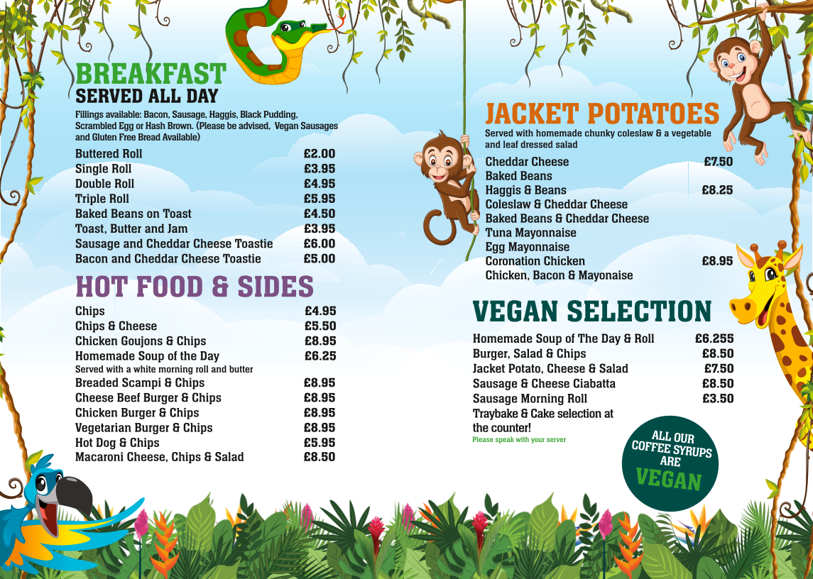 Tree Top Café specializes in wholesome British café cuisine, emphasizing fresh, locally sourced ingredients. It's a haven for breakfast lovers, serving a hearty breakfast menu available all day. Picture this: a warm, buttered roll filled with your choice of crispy bacon, savory sausage, or even haggis for a taste of Scottish tradition, all beautifully complemented by a side of freshly made coleslaw and a crisp salad. The Sausage and Cheddar Cheese Toastie and the Bacon and Cheddar Cheese Toastie stand out, with their gooey cheese and perfectly cooked fillings, offering a melty indulgence that will delight your taste buds. For something lighter, the homemade soups are renowned, especially on a cool day, like the Soup of the Day, served with a roll that keeps customers coming back for more.